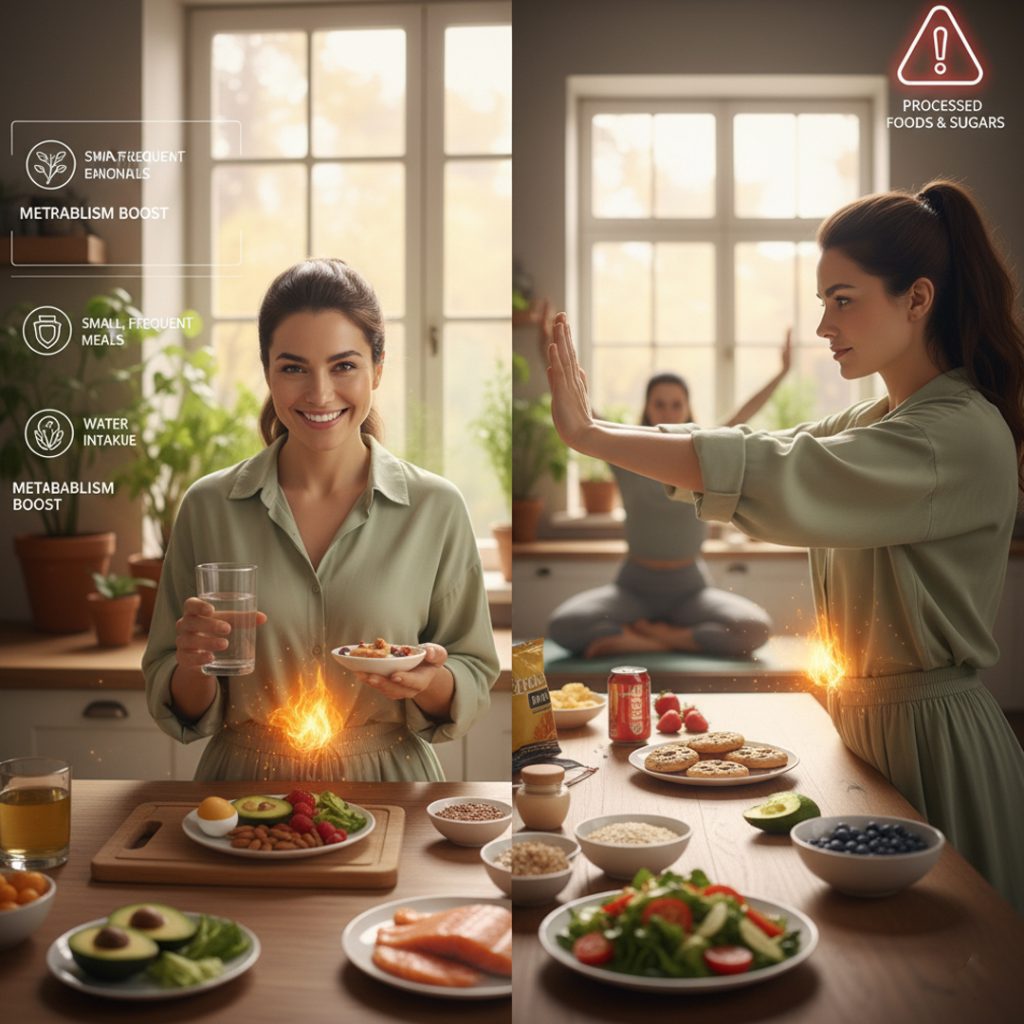 - Eat small, frequent meals to keep metabolism high.
